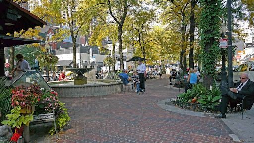 spending his evenings at a restaurant across from the park writing stories for his North Loop News column. Totalling only 0.18 acres, this park is perfect for people watching, reading a good book, or admiring the local architecture. One of its notable structures is a small fountain and Prairie-style pavilion designed by Birch Burdette Long in 1900, an architect commonly known as one of Frank Lloyd Wright’s protégés.